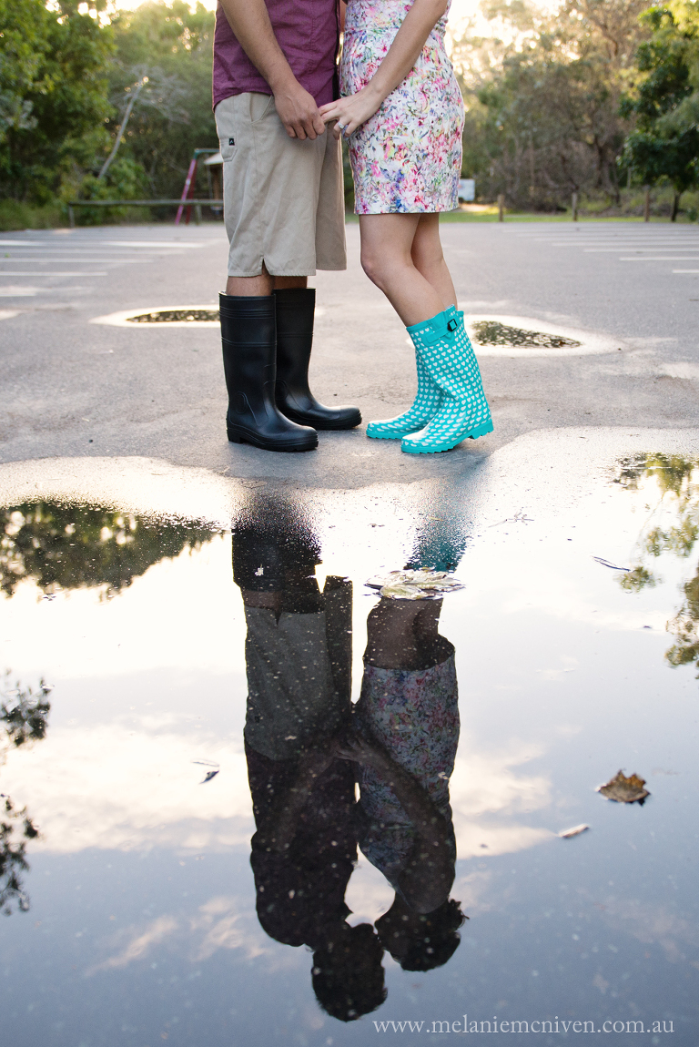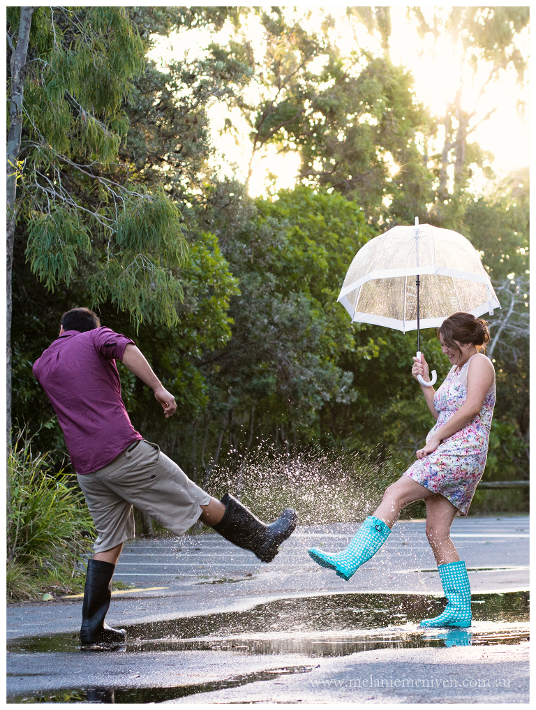 I often photograph on Hasting Street, Noosa Main Beach and Noosa Woods and what I love so much about this location is that no matter how many times I photograph there, I always seem to find something different. A different perspective, a different little nook to photograph in. It’s amazing how this location keeps on giving. It certainly didn’t fail to deliver today when I photographed this gorgeous couple’s engagement shoot. The weather was changing from overcast, to sunny to (well I would like to say spots of rain) but as you will see it was more like puddle jumping weather. I have found it extremely hard to limit the photographs in their little sneak peek. There was so much beauty, romance and mischief. It was really hard to choose, but here it goes…