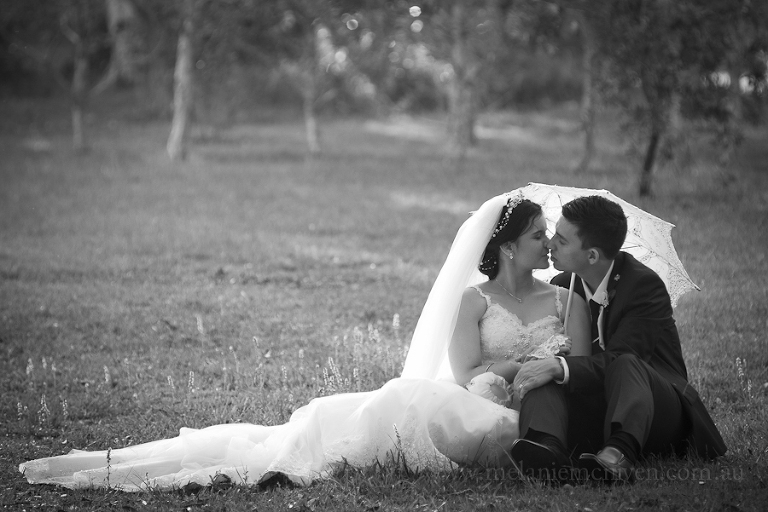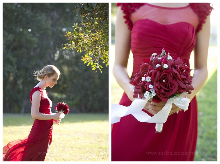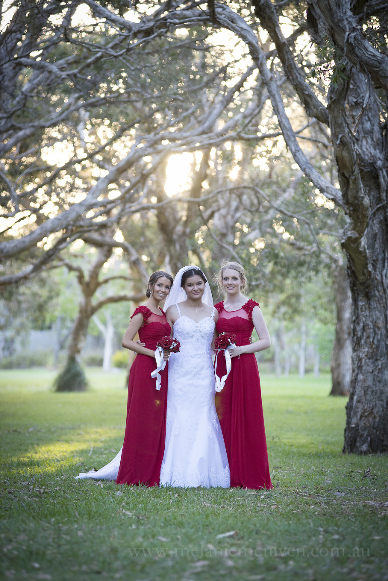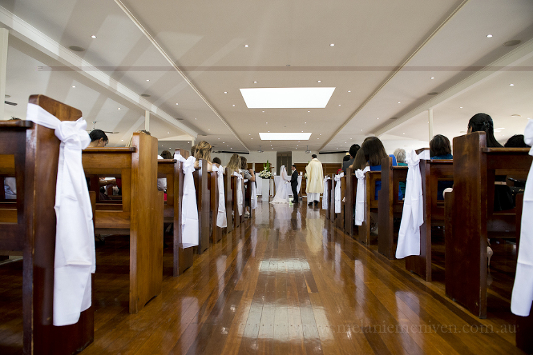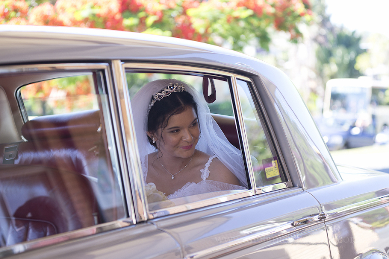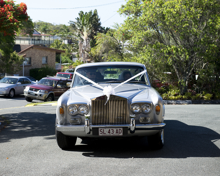 Mary’s wedding day began with Sandy, from Rolling Scissors, and Ruby Jade Makeup, making sure the girls looked stunning. You certainly need to look your best when traveling toward the love of your life in the deluxe wheels of Champers Rolls Royce Hire. As Mary pulled up at Our Lady of Rosary Parish, in the heart of Caloundra, emotions were running high. This young couple had planned their wedding day from a great distance and had only seen each other briefly, during their 18 month long wait. As Mary walked down the aisle, happy tears were flowing. A butterfly release concluded the proceedings and it was off for some bridal portraits in Coochin Park.