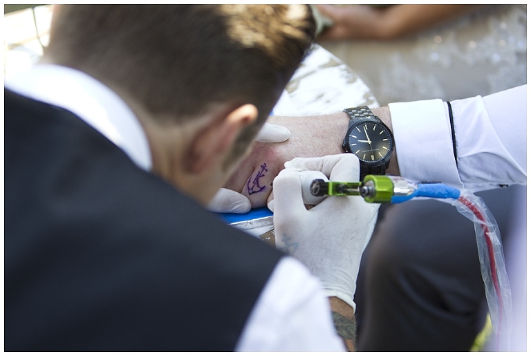 These guys had the best idea for their ring exchange. They invited their tattooist to their wedding ceremony to have the ring tattooed on the spot! Take a little look at all the other amazing things that happened throughout their special day…